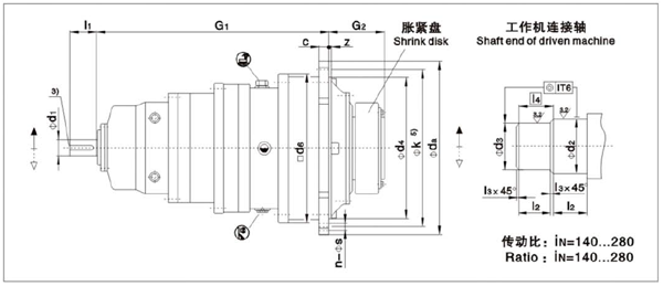 注:1、當d1≤100時公差為m6,當d1〉100時公差為n6;