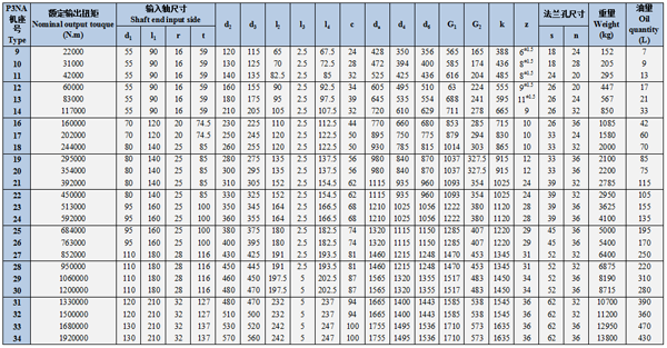 1、P系列行星齒輪減速器采用漸開線行星齒輪傳動,合理利用內、外嚙臺、功率分流。因此具有重量輕、體積小、傳動比范圍大、效率高、運轉平穩、噪聲低、適應性強等特點;