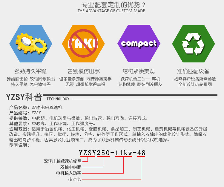 雙輸出軸減速機(jī)僅僅是非標(biāo)準(zhǔn)減速機(jī)中較有代表性的產(chǎn)品之一,在十多年的產(chǎn)品定制過(guò)程中,我們接觸了太多的非標(biāo)減速機(jī)案例,比如6軸、8軸、甚至還有14軸的多軸減速機(jī)。其實(shí),我們關(guān)心的不是您的設(shè)備需要幾根輸出軸,我們關(guān)心的是,您的技術(shù)參數(shù)是否準(zhǔn)確并完整。只要技術(shù)參數(shù)到位了,正常情況下,我們都可以給出佳的技術(shù)方案。